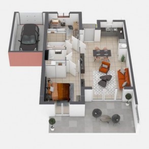 Chaque logement dispose des mêmes prestations : une place de parking privée et un garage avec accès direct au logement. A l’arrière, vous profitez d’une belle terrasse ouverte sur le jardin exposé  plein Ouest et la verdure.